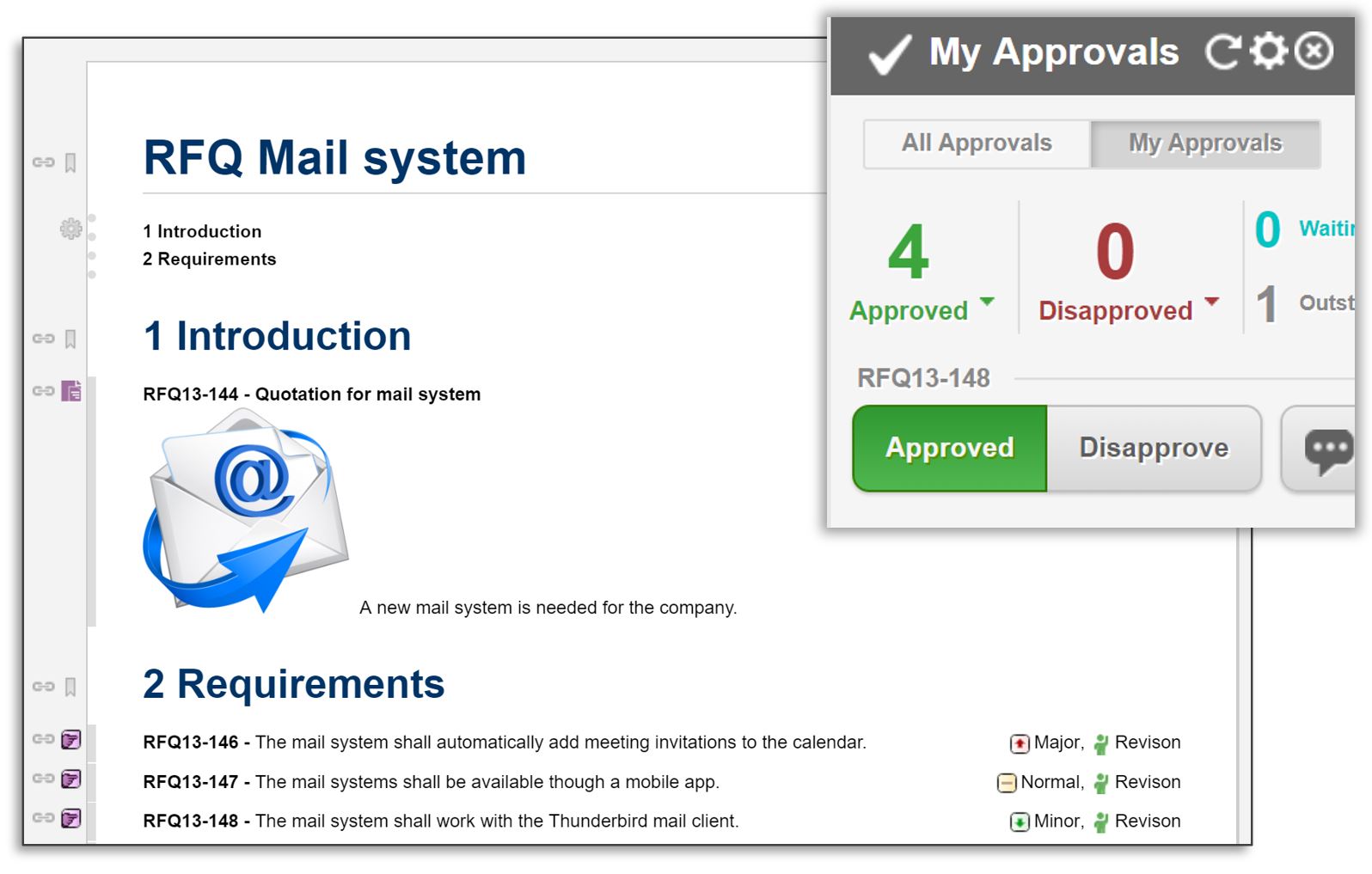• Clarity – Identify and control individual requirements within the document. See who has changed what and when and what is the status of the requirement.